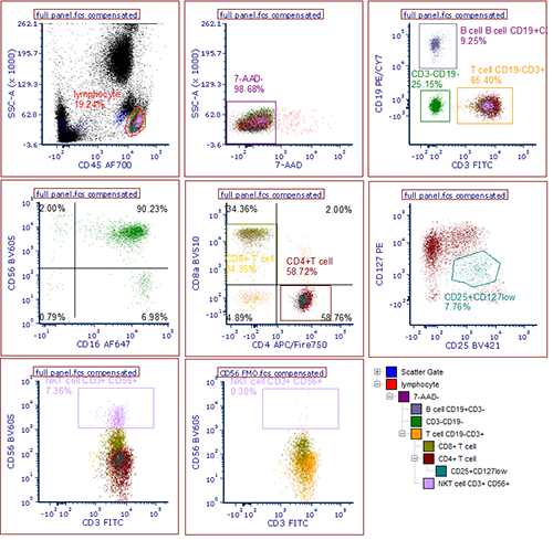 這次上機(jī)課程分為3個部分:T/B/NK/NKT/Treg10色檢測;Th1/Th2檢測;LEGENDplex多因子DEMO實(shí)驗(yàn)。上機(jī)課程中達(dá)科為技術(shù)團(tuán)隊(duì)為大家詳細(xì)介紹本次實(shí)驗(yàn)的相關(guān)內(nèi)容,包括: marker選擇、panel設(shè)置、對照選擇/設(shè)置,protocol染色操作及注意事項(xiàng)。關(guān)于操作部分,表染及胞內(nèi)染色的 DEMO實(shí)驗(yàn)之后詳細(xì)演示了儀器電壓補(bǔ)償?shù)恼{(diào)節(jié),同型對照及FMO對照的應(yīng)用等。