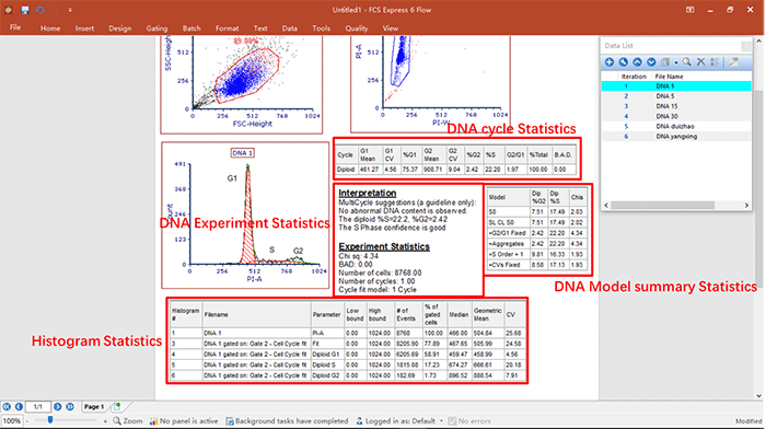 ? 演示內(nèi)容:細(xì)胞周期數(shù)據(jù)的分析,關(guān)于細(xì)胞周期各個參數(shù)的調(diào)用,統(tǒng)計學(xué)圖表的建立