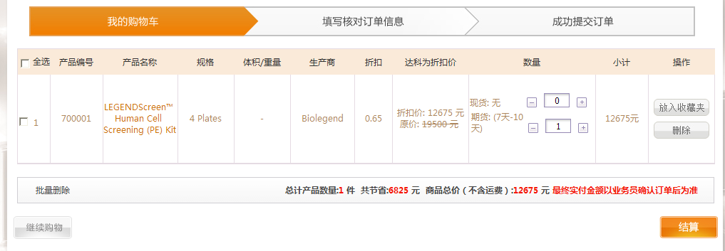 查看購(gòu)物車(chē),可以調(diào)整產(chǎn)品購(gòu)買(mǎi)數(shù)量,結(jié)算下單,及返回購(gòu)物。